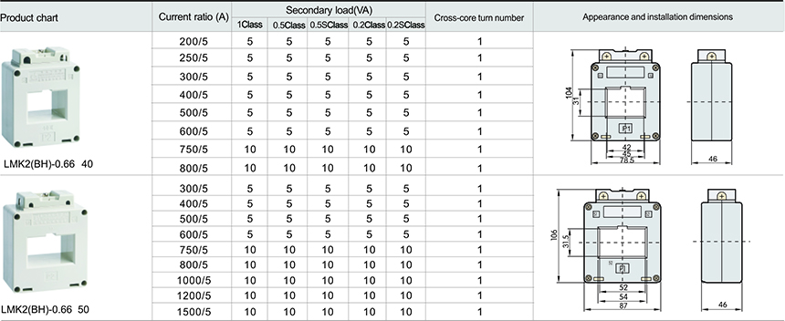 For example: order LMK2 (BH) - 0.66 type, window width is 40 mm, rated current than 200/5 a and rated output 5 va, accurate magnitude 0.5 on the Richter scale transformer.