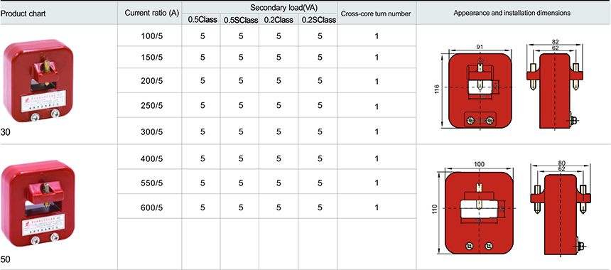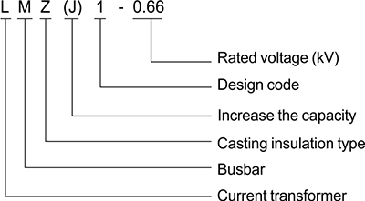 For example: solid order LMZ(J)1-0.66, Bus width is 50mm,rated output current ratio 600/5 a and 5 va,Accurate magnitude 0.5 magnitude of transformer.