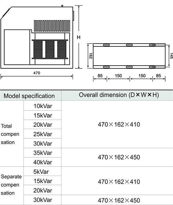 Reactive capacity: common compensation≤40kvar, separate compensation≤20kvar;