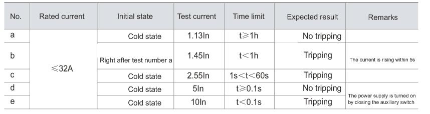Graded as follows according to the rated current In: 6A, 10A, 16A, 20A, 25A, 32A;