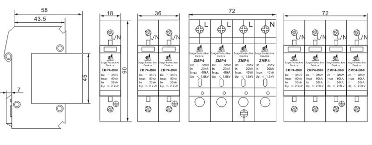 ZMP4 series surge protective device is applicable for B, C grade surge protection, installed on the joint of LPZ0A zone or LPZ0B and LPZ1 zone, which protects the electric network not shocked by the thunder and lightning. These series usually installed in household distribution boards, computerequipment,informationequipment, electronic equipment and in the socket box in front of control equipment or near the control equipment.