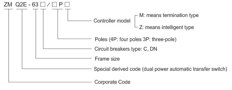 StructureZMQ2E Twin power auto transfer switch consists of two pieces of miniature circuit breaker, motor, controller, and driving mechanism. The ATS has three positions for user choice, normal power ON, dual OFF, standby power ON.High breaking miniature circuit breaker is used, same performances.Simple structure, practical, easy operation, no noise, small impact, long service life and etc.Working theoryThe controller of ATS will detect two loops of power supply, when one loop has fault, controller will give a logic decision and send a command of closing and opening the related miniature circuit, to ensure the safe and reliable power supply