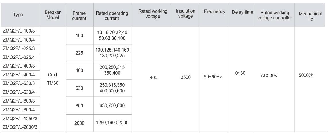 ZMQ2 / F Series intelligent self-protection dual power switch (hereinafter referred to as switch) for AC 50Hz, rated working voltage 400V, rated current 16A ~ 2000A. Mutual conversion used in emergency power supply system of two common power supply (N) and standby power (R) between (can also be set to manual) and as a control, signaling, interlocking and other uses of the switching control circuit, the present products with some models designed communication port, which enables remote control, allowing users to achieve unattended substation. Suitable for residential areas, military facilities, hospitals, shopping malls, airports and other places.
