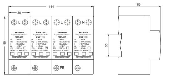 Equipment system used in high risk area of the power supply of the first Primary surge protection. Can prevent lighting strike, all kinds of surge current, pass A combination of different number of suitable to single-phase, three-phase power supply line, die-Modular design, standard 35mm rail mounted, installed in the building the total power distribution cabinet (box), outdoor distribution cabinet (box), with lighting current high the discharge capacity, free wheeling, single module maximum impulse current (10/350μs) brancDon't reach limp=15kA, limp=25kA, Iimp=35kA, Iimp=50kA Maximum discharge current (8/20μs) can reach Imax=100kA, Imax=150kA, Imax=160kA, Imax=200kA.