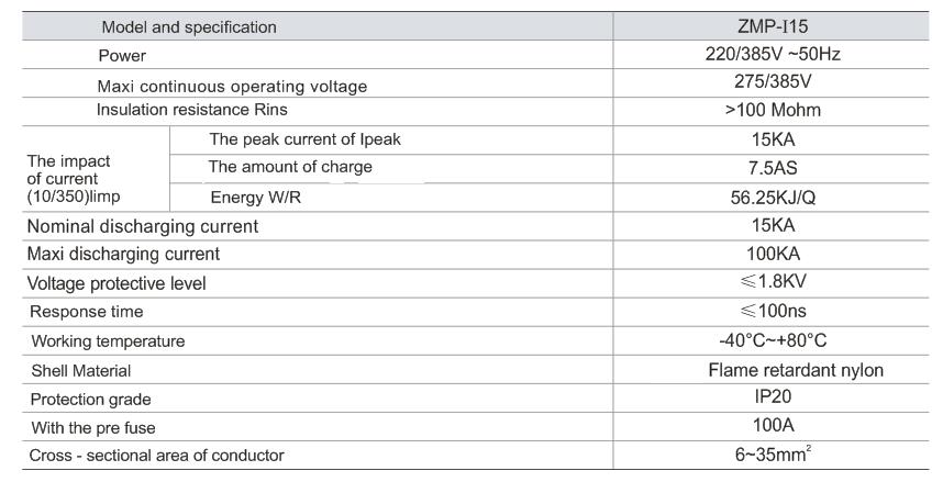 ZMP-I15 series of pressure limiting type surge protective device(a Lighting arrester, 10/35μs waveform) 3 according to IEC and GB standards.