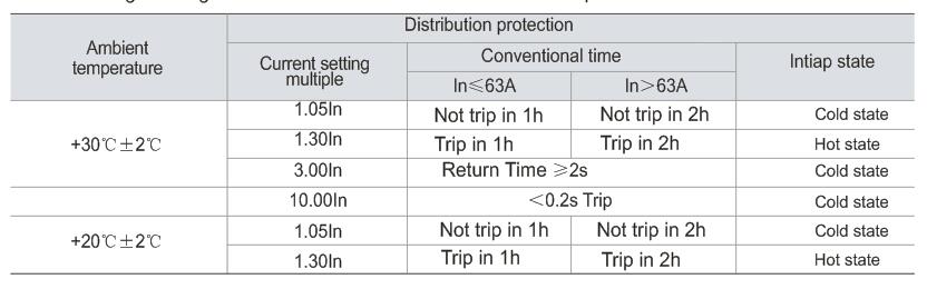 Inverse time lag breaking characteristics of circuit breaker for distribution protection