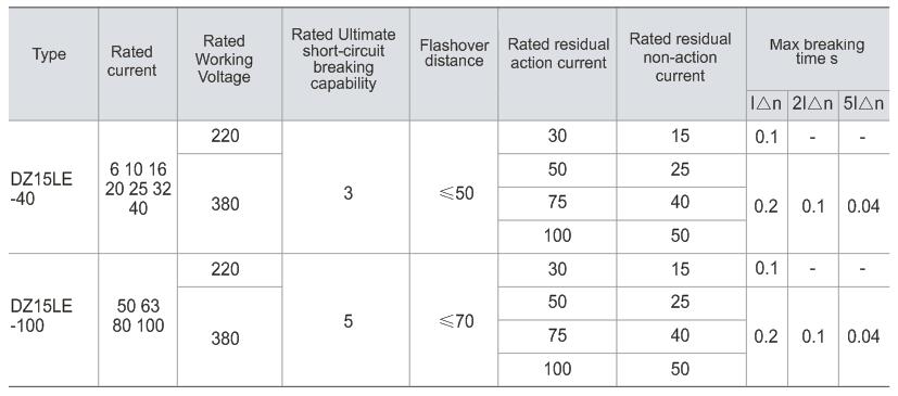 DZ15LE series leakage circuit breaker is suitable forcircuit of AC 50Hz, rated working voltage 380V andrated current 100A, to make indirect contact protection to the human being, also to prevent fire accident causedby ground fault current due to the damage of insulationof equipment. In addition, it not only can protectthe circuit and motor against overload and short circuit,but also can be used to switch the circuit and startthe motor infrequently.