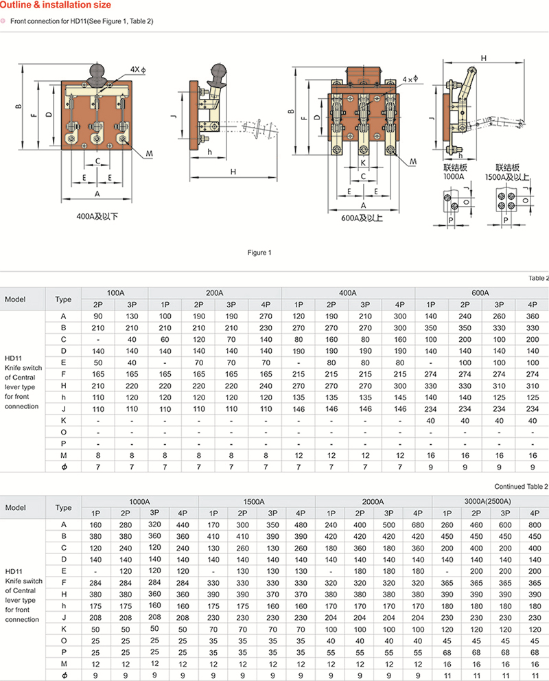 HD knife switch and knife-shaped transfer switch (hereinafter referred to as the switch) ?is applicable for the complete set of distribution unit with the AC frequency of 50Hz, rated current up to 380V and the rated current up to 3000A, to turn on and off the AC and DC circuit in an infrequent manner or serve as isolation switch