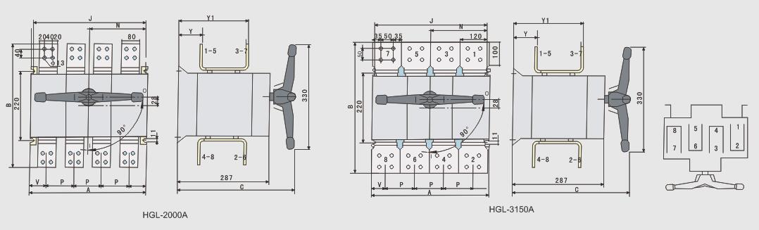 HGL series changeover switch ( referred to as the changeover switch) for AC 50Hz, rated voltage up to 660V , the DC rated voltage to 440V, the rated current of 125A-3150A. In the industrial enterprise distribution system do not frequently connected with the breaking circuit and isolation circuit, only electrical isolation. Do not operation with load.