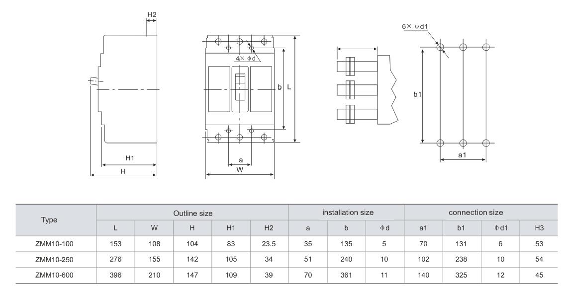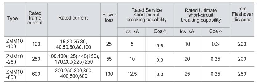 ZMM10 series molded case circuit breaker (hereinafterreferred to as circuit breaker) is suitable for distributingnetwork of AC 50Hz (or 60Hz), rated current 15~600A,ated insulation voltage 690V and rated working voltage400V or below. It can be used to distribute electric energy and protect the circuit and electric equipment againstoverload, short circuit and under voltage, under normalcondition, the circuit breaker also can be used tswitchthe circuit infrequently. Circuit breakers of frame size250A and below also can be used to protect motor orinfrequently start motor.