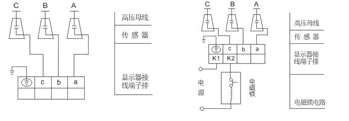 戶(hù)內(nèi)高壓帶電顯示裝置由三個(gè)傳感器和一個(gè)顯示器經(jīng)導(dǎo)線連接組成。適用于額定頻率50Hz,額定電壓40.5kV以下的戶(hù)內(nèi)高壓電氣設(shè)備上,既可反映回路帶電狀況,還可與電磁鎖配合,實(shí)現(xiàn)強(qiáng)制閉鎖開(kāi)關(guān)手柄、閥門(mén)等。帶電顯示和強(qiáng)制閉鎖均受同一高壓信號(hào)所控制,但電路系統(tǒng)又是相互獨(dú)立、互不干擾,只要高壓回路帶電,即使顯示電路和閉鎖電路同時(shí)出故障,電磁鎖仍處于閉鎖狀態(tài),達(dá)到防止誤操作,誤入帶電間隔。