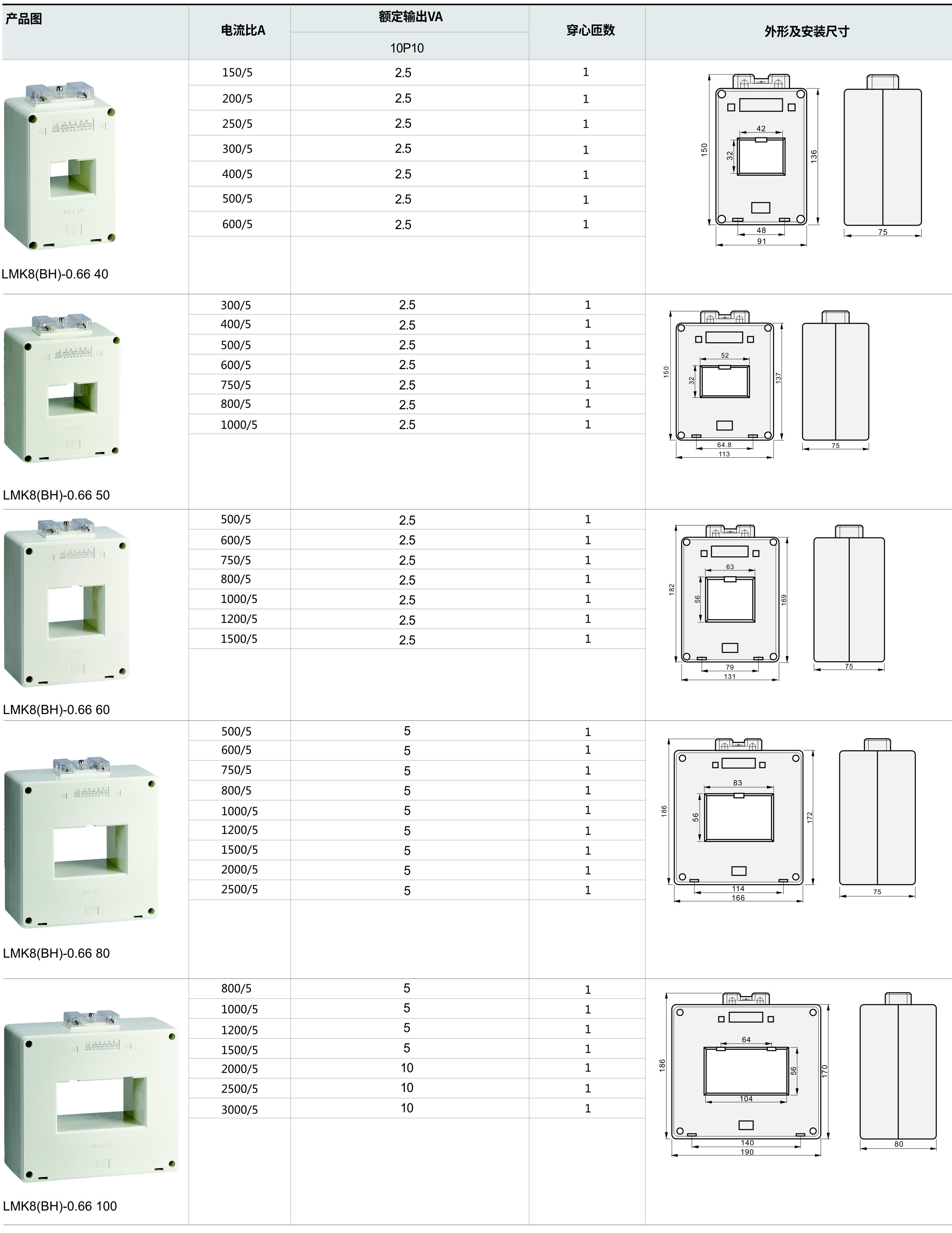 LMK8(BH)-0.66 型電流互感器主要用于戶內(nèi),供額定電壓為0.66kV及以下,額定頻率為50Hz的交流電路中作為電流、電能測(cè)量或計(jì)量保護(hù)用。產(chǎn)品為塑殼式電流互感器,廣泛應(yīng)用于成套柜體,其安裝方法可采用母排固定和底板固定安裝方法,適合水平或垂直安裝,與Ⅰ、Ⅱ型相比具有容量大、精度高、附件少、安裝方便等優(yōu)點(diǎn)。