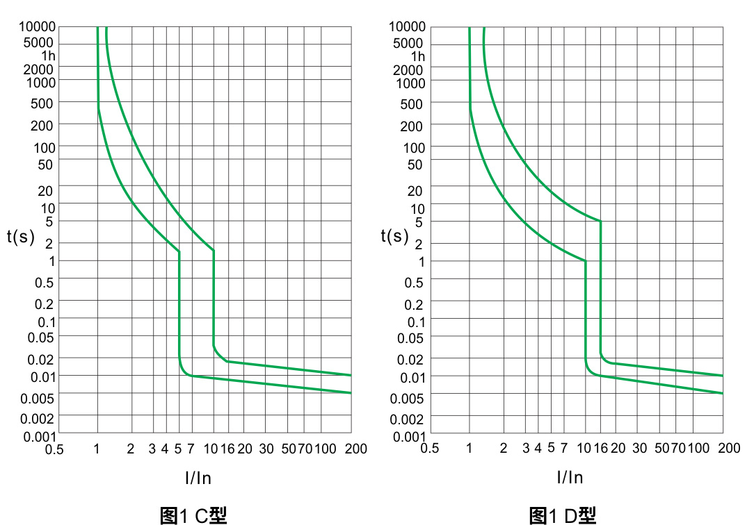 按瞬時(shí)脫扣器特性分:C型(5~10)In,D型(10~16)In