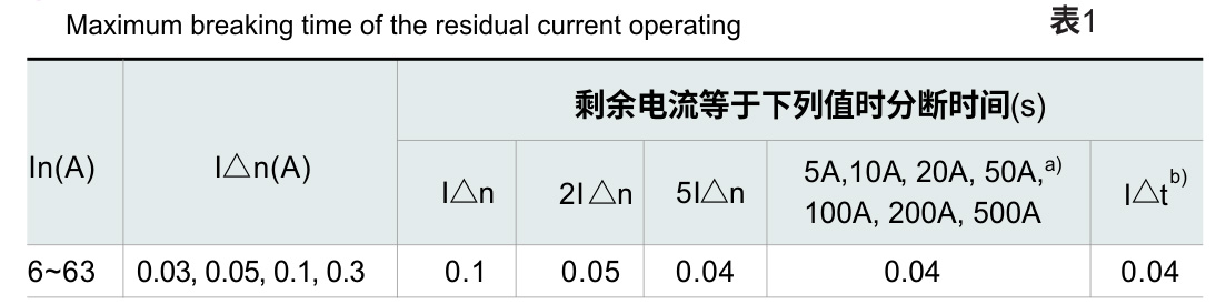 剩余電流動(dòng)作的分?jǐn)鄷r(shí)間見(jiàn)下表1