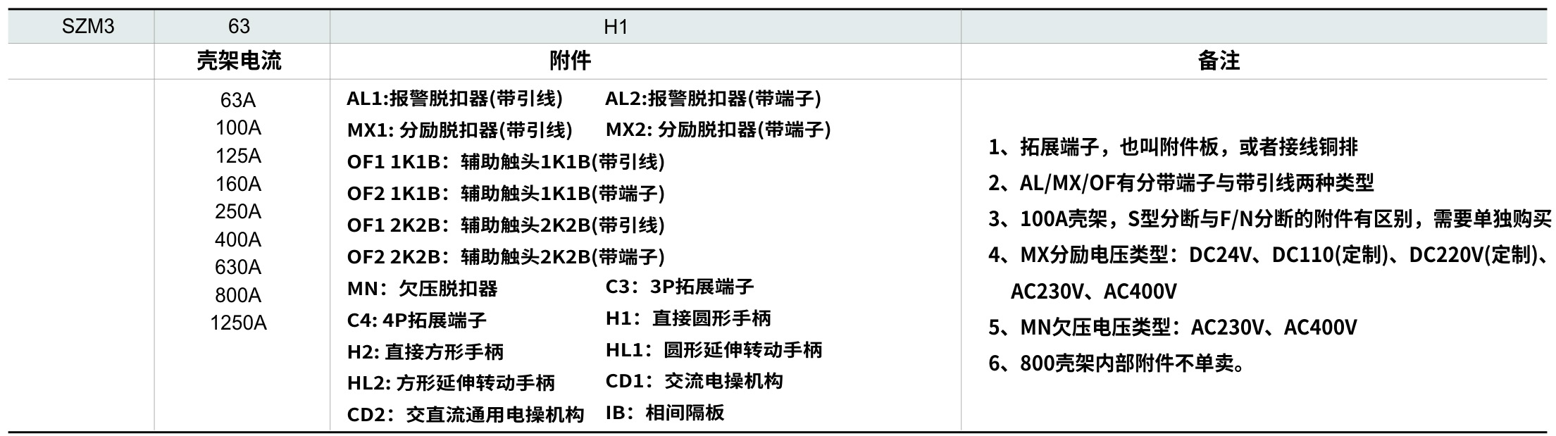 2.分勵(lì)/輔助/報(bào)警觸頭分為端子與引線兩種,欠壓標(biāo)配帶端子。