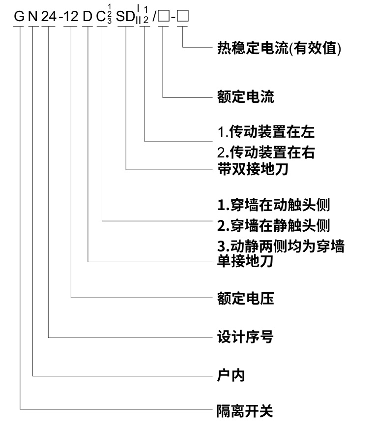 GN24-12D(C)(I, II)系列戶內(nèi)高壓隔離開關(guān)(以下簡稱隔離開關(guān))為額定電壓10kV、三相交流50Hz的網(wǎng)絡(luò)中,作為在有電壓而無負(fù)載的情況下,分、合電路和接地之用。