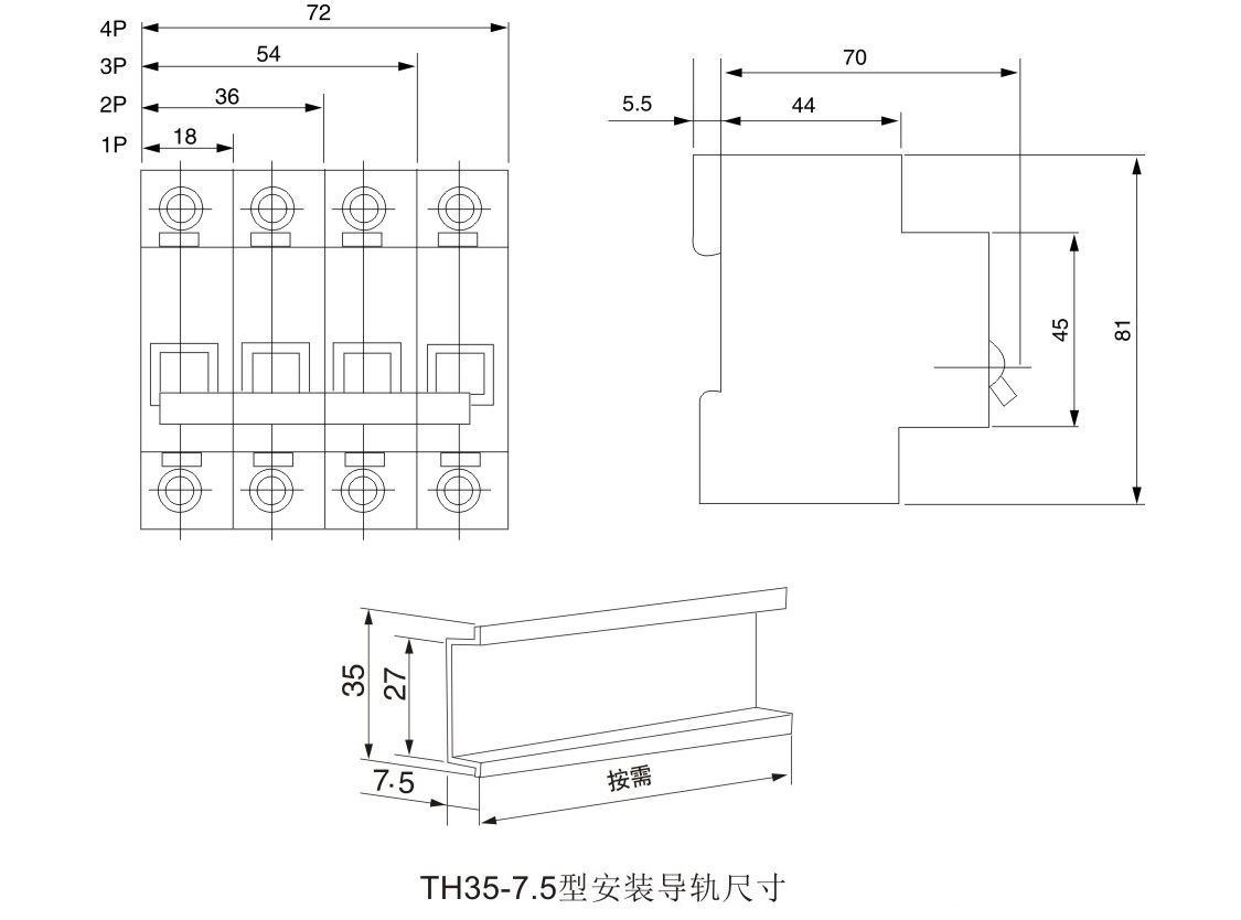 1.斷路器具有一個(gè)過電流保護(hù)極和一個(gè)開閉中性極,并帶有分勵(lì)脫扣裝置。