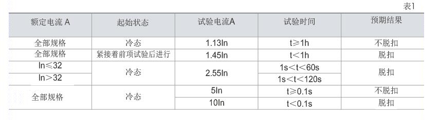 斷路器過電流保護(hù)特殊(見表1)
