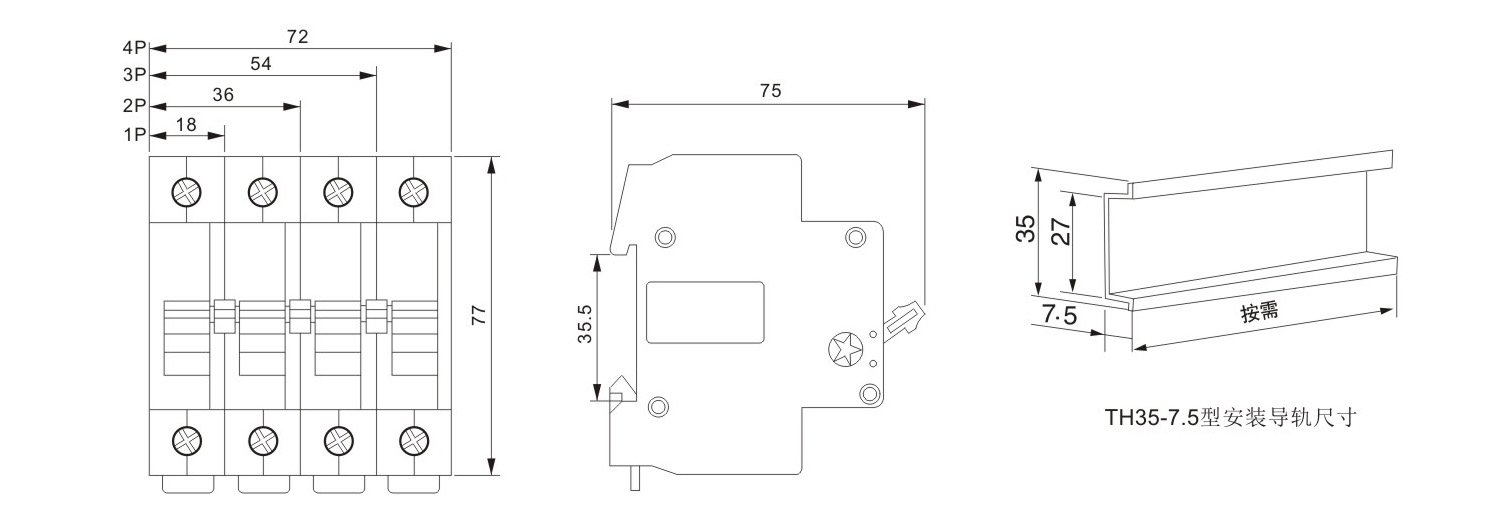 安裝方式:采用TH35-7.5型鋼安裝軌安裝,其安裝面與垂直面的傾斜度不超過5°。