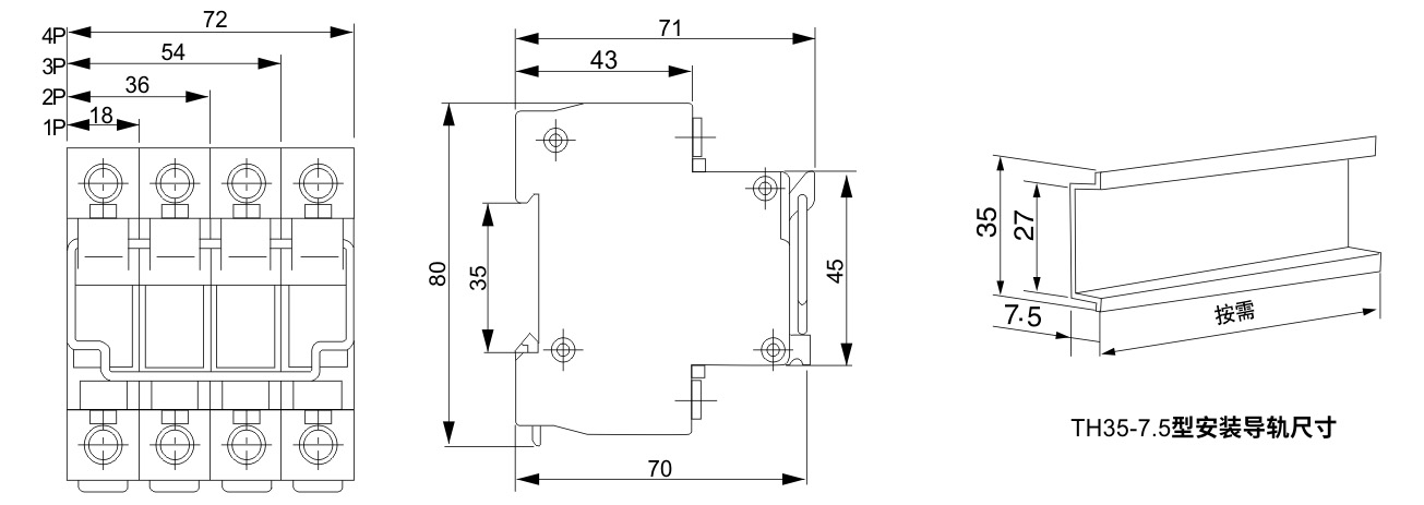 安裝方式:采用TH35-7.5型鋼安裝軌安裝,