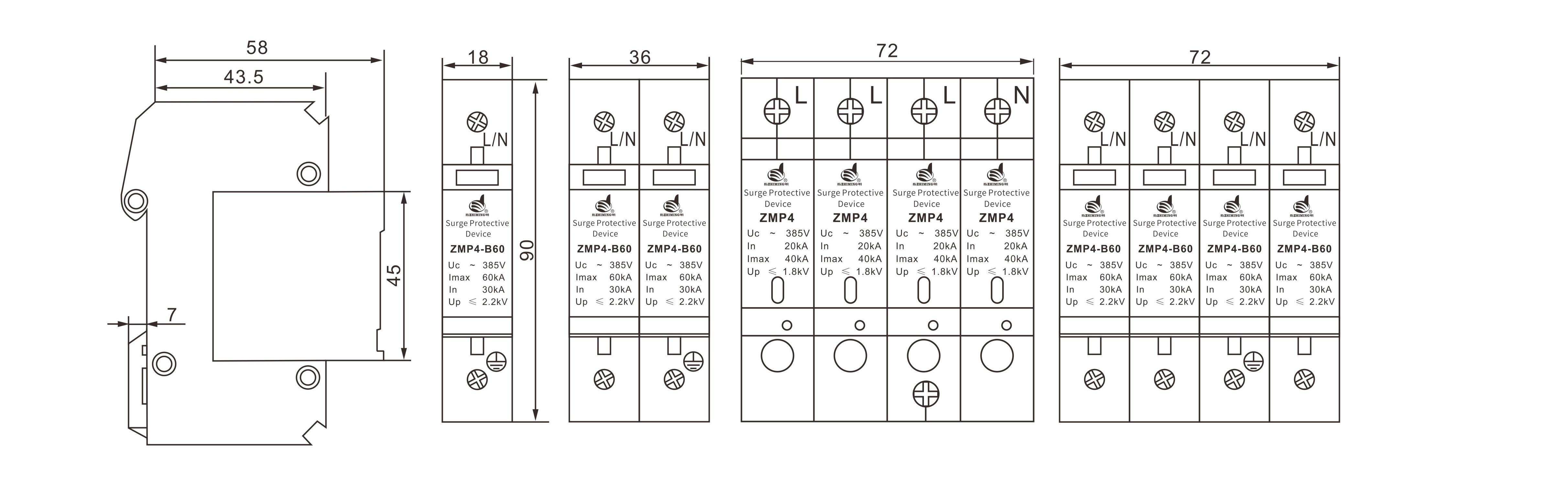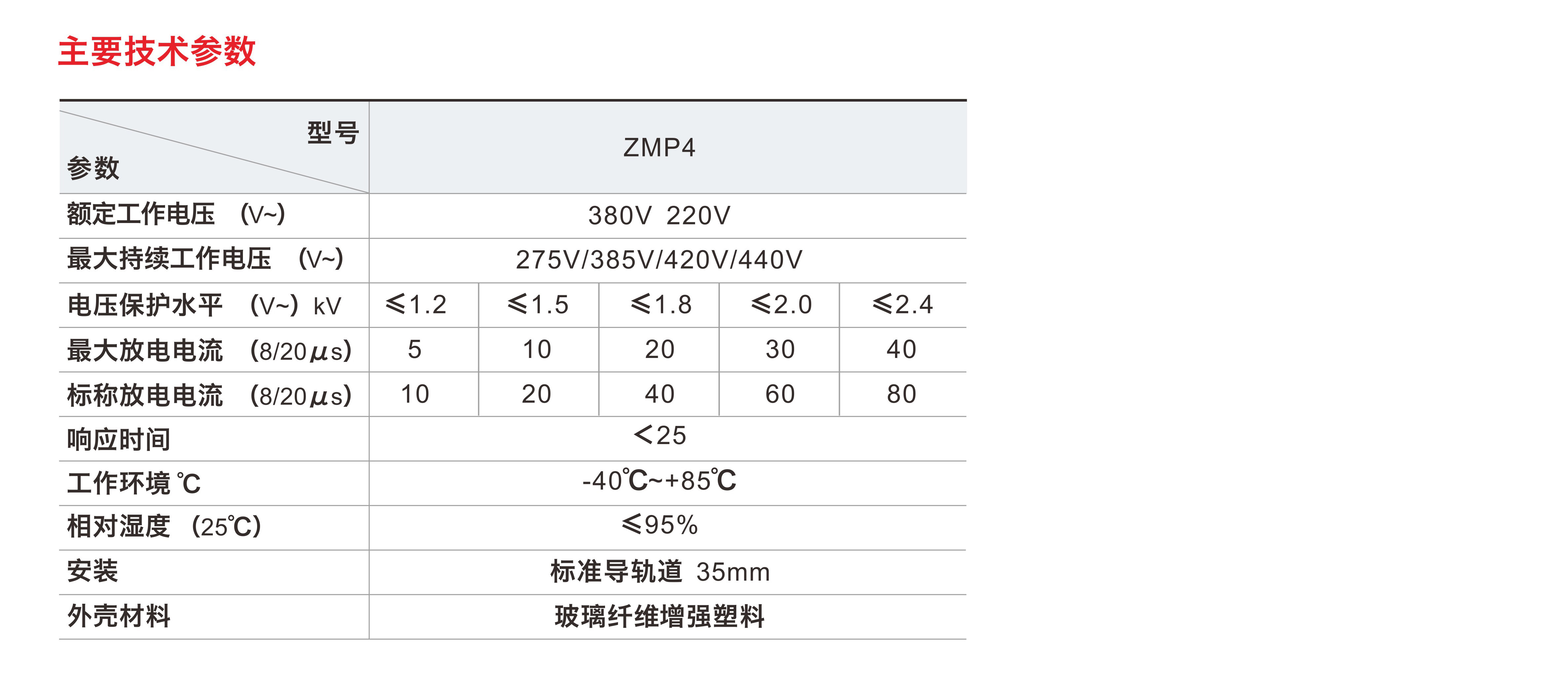 ZMP4 系列電涌保護(hù)器適用于交流50/60Hz, 380V及以下的TT、TN-C、TN-S、IT等供電系統(tǒng),對(duì)間接雷電或直接雷電影響或其它瞬間過電壓進(jìn)行保護(hù)。
