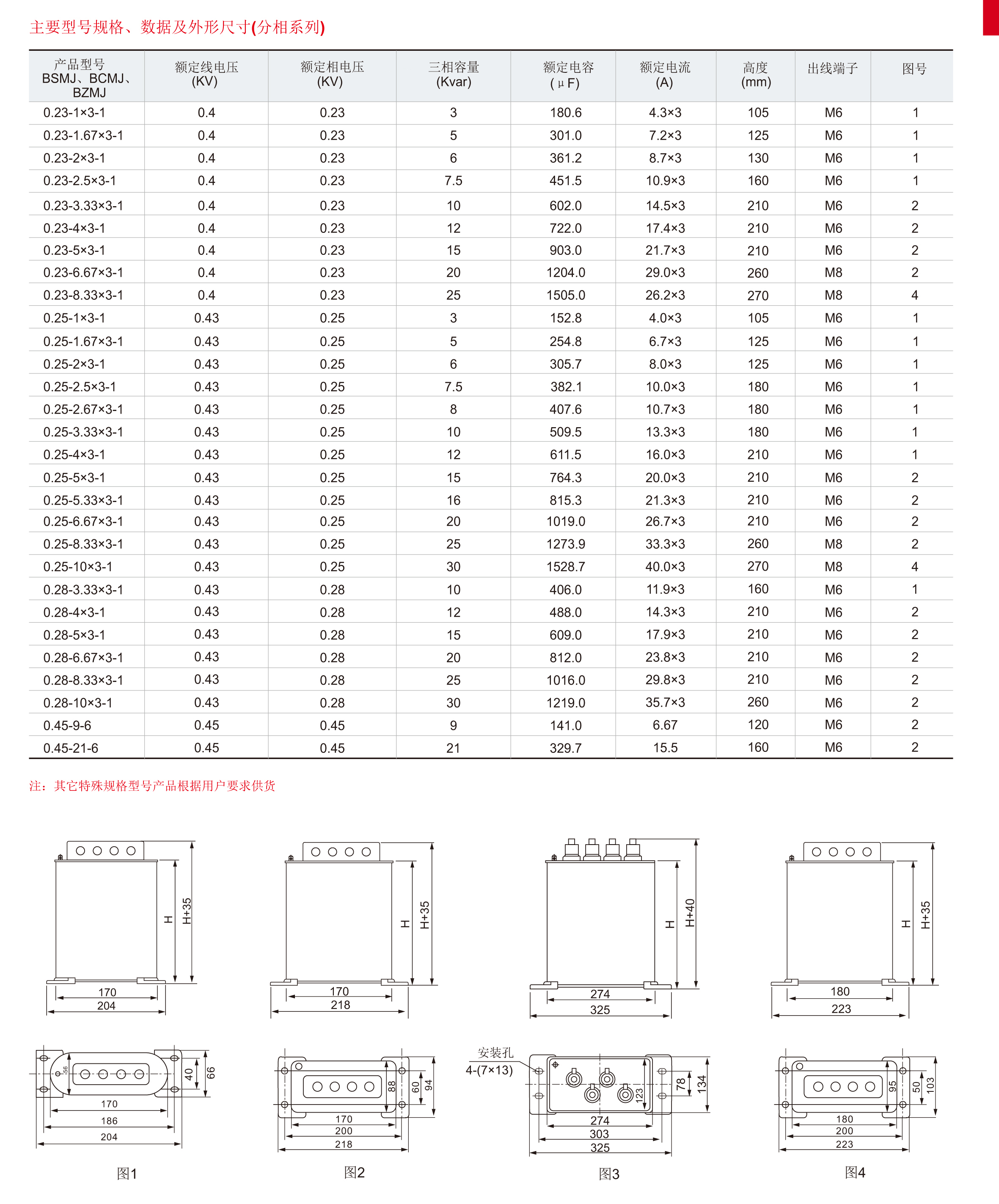 隨著無(wú)功補(bǔ)償技術(shù)的發(fā)展,對(duì)于三相不平衡負(fù)載,可采用三相分別投切電容器的方式,分相補(bǔ)償無(wú)功功率。這樣使補(bǔ)償精度更高,節(jié)電效果更佳。為此,我公司開(kāi)發(fā)出分相償并聯(lián)電容器,其外殼設(shè)有中性點(diǎn)引出接線端子,可方便地實(shí)現(xiàn)電容器的分相投切。該產(chǎn)品的結(jié)構(gòu)特征,主要技術(shù)參數(shù),訂貨須知等均參見(jiàn)本公司自愈式低壓并聯(lián)電容器的技術(shù)說(shuō)明。