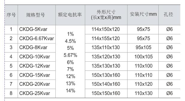2.電抗率為:1%, 4.5%, 5%, 5.67%,6%, 7%, 12%, 13%, 14%;