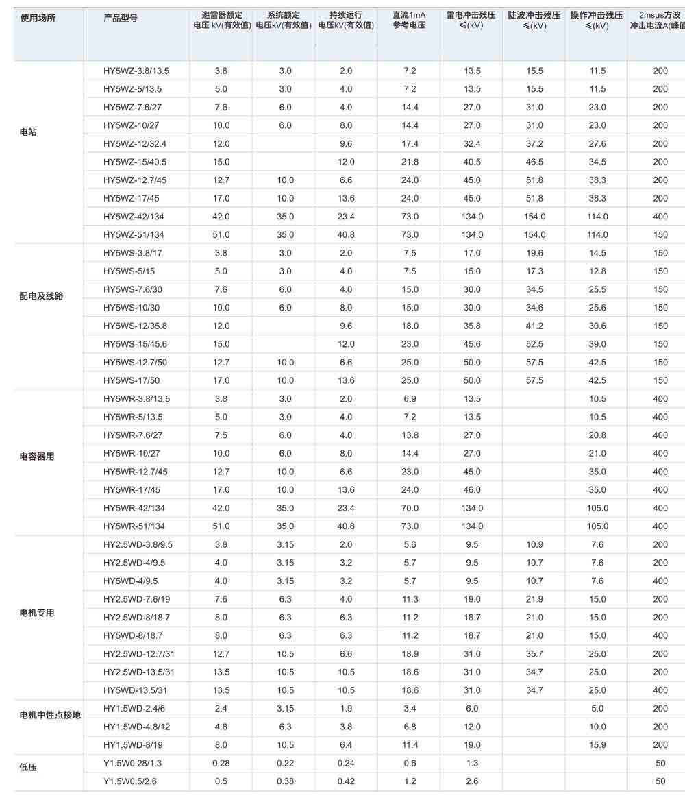 其特點是:金屬氧化鋅避雷器采用伏安特性優(yōu)異的氧化鋅電阻片作為芯體,與傳統(tǒng)的碳化硅避雷器相比,具有動作迅速、陡波特性好、殘壓低、通流容量大、無續(xù)流、結(jié)構(gòu)簡單、重量輕、可靠性高、耐污穢能力強、維修簡便等優(yōu)點。復合外套型還具有外套采用硅橡膠整體模壓成型,無氣隙,密封性能好,防潮防爆,無炸裂危險,特別適宜開關(guān)柜使用。