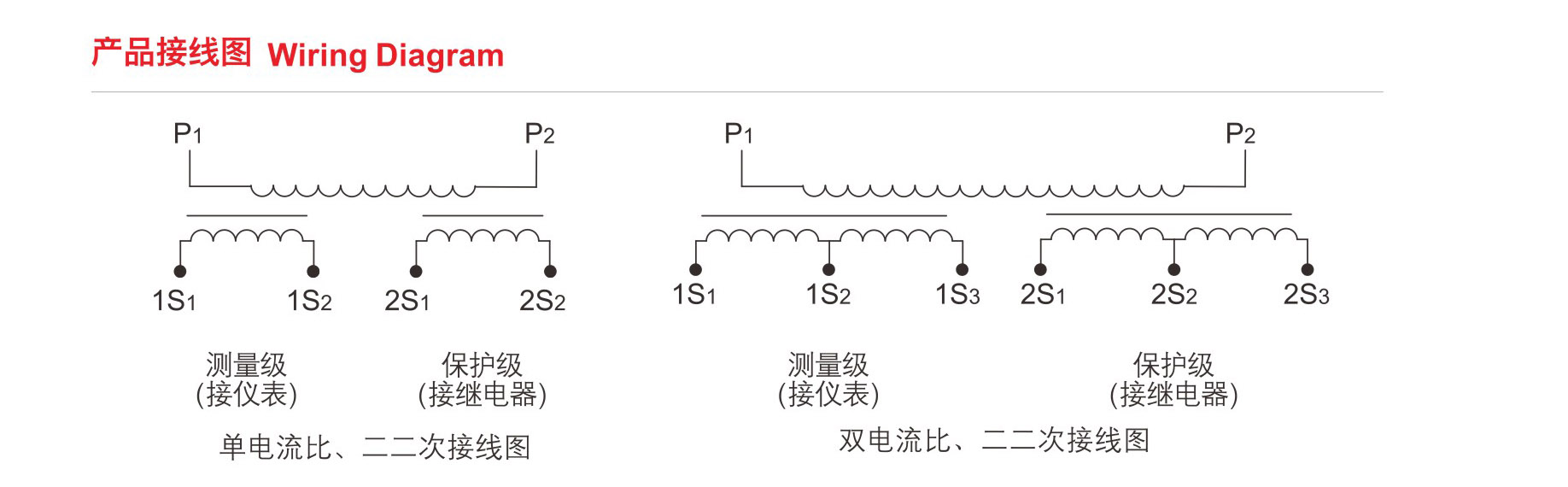 注意:雙電流比產(chǎn)品,1S1-1S2, 2S1-2S2為小電流比;1S1-1S3, 2S1-2S3為大電流比