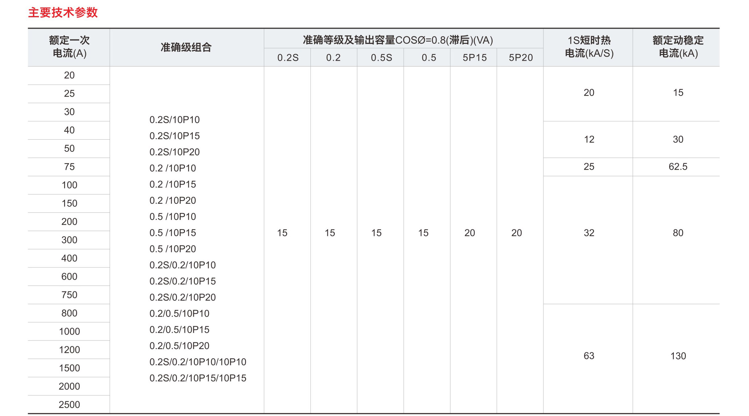 其他技術(shù)參數(shù)見下表(二次電流為5A): ?