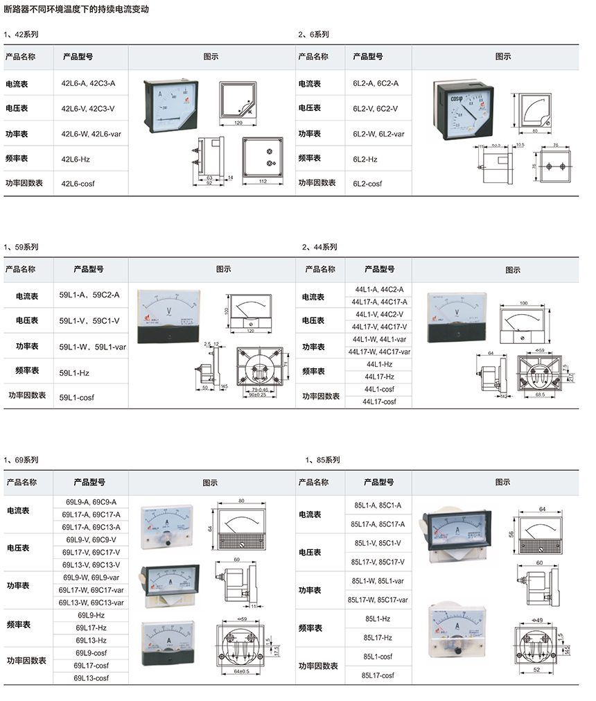 安裝式電工儀表是用途很廣的直接作用模擬指示電測儀表、適用于直流電路和工頻交流電路測量:電壓、電流、頻率、功率因素以及同步指示等電量參數(shù),安裝板表固有的優(yōu)點(diǎn)是可以顯示被測電量的變化趨勢,除單獨(dú)使用外,主要是為了各高、低電壓開關(guān)柜,電源柜、控制柜以及各種電控裝置、做儀表盤配套使用,產(chǎn)品各項指標(biāo)符合GB/T7676-1998國家標(biāo)準(zhǔn)技術(shù)要求。塑料或膠木外殼、大窗口、廣視角,造型簡潔明快、美觀大方。