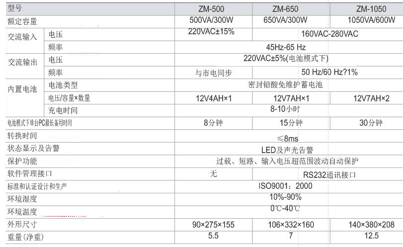 ZM系列后備式UPS,采用高標(biāo)準(zhǔn)的電子集成線路,應(yīng)用微電腦控制技術(shù)研發(fā)推出的新一代智能型UPS,擁有超寬輸入穩(wěn)壓、自動頻率調(diào)節(jié)、短路自動保護(hù)、輸出過載自動保護(hù)、電池過放電自動保護(hù)等完善智能化功能。配有RS232通訊接口可與計(jì)算機(jī)連接,監(jiān)控UPS電源輸入輸出是否正常工作,同時可設(shè)置定時自動開關(guān)機(jī)。