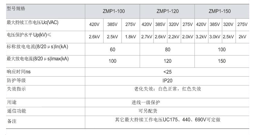 ZMP1系列電涌保護(hù)器(以下簡稱SPD)適用于TT、TN-C、IT等供配電系統(tǒng)三相電源的B級電涌保護(hù)。該產(chǎn)品采用一體的設(shè)計,其保護(hù)模式有L-PE/N-PE、L-N/N-PE兩種。具有通流容量大、殘壓低等特點;保護(hù)器本體具有熱脫離告警功能,可根據(jù)用戶要求增加遙信接點。