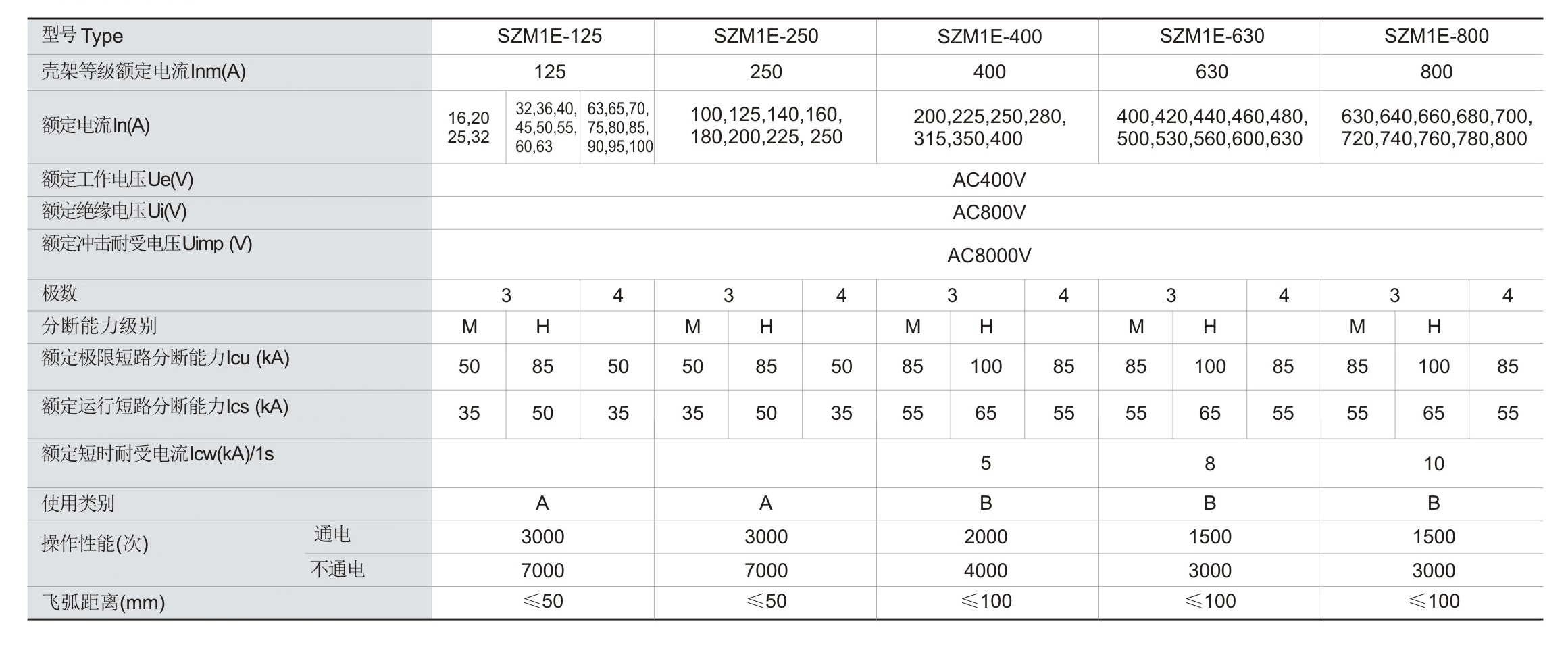 SZM1E系列智能型塑料外殼式斷路器(以下簡稱斷路器),適用于交流50Hz(或60Hz),其額定絕緣電壓為800V,額定工作電壓690V及以下,額定工作電流至800A的電路中作不頻繁轉(zhuǎn)換及電動機不頻繁起動之用。斷路器具有過載長延時反時限、短路短延時反時限、短路短延時定時限、短路瞬時和欠壓保護功能以及剩余電流保護(可選),缺相保護功能(可選),能保護線路和電源設(shè)備不受損壞,斷路器保護特性齊全、精確,能提高供電可靠性,避免不必要的停電,其中“Z、B”型控制帶有通訊接口,可進行“四遙”,以滿足控制中心和自動化系統(tǒng)的要求。