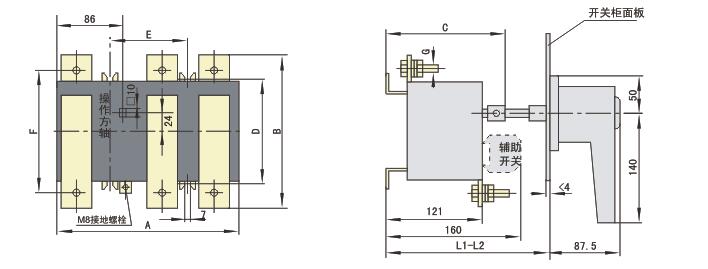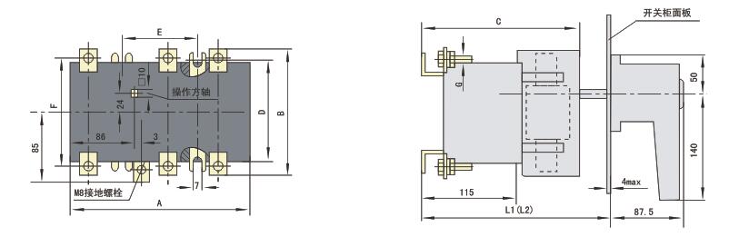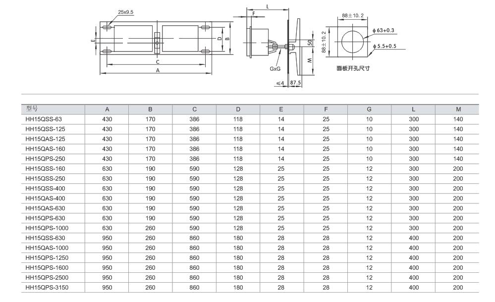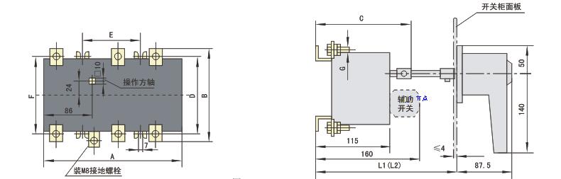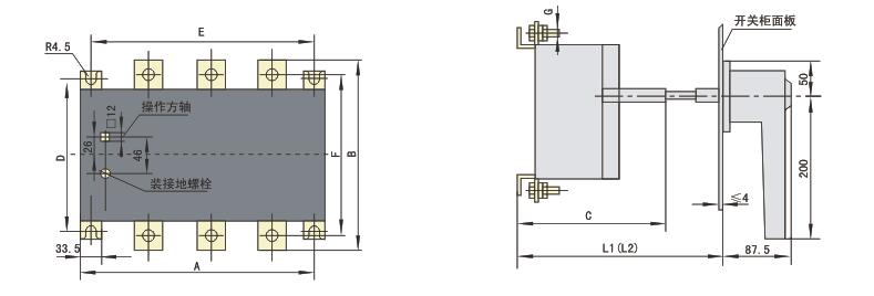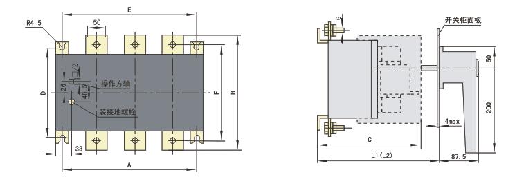 面板開孔是為了固定操作手柄底座之用,其尺寸與對應(yīng)開關(guān)規(guī)格關(guān)系